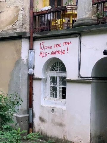 "15 лет течет труба, ЖЭК дармоед!", - написали львовяне.